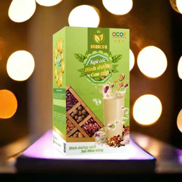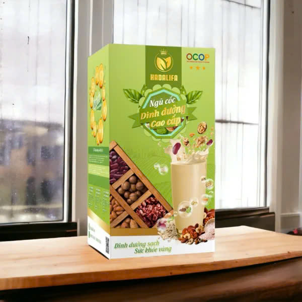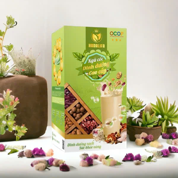 Thành phần: Tảo xoắn Spirulina, hạt óc chó vàng, óc chó đỏ, hạnh nhân, macca, hạt chia, hạt điều, bí xanh, đậu sachi, đậu xanh tằm, đậu đen xanh lòng, đậu đỏ, đậu trắng, đậu trắng huyết rồng, đậu tây, ngô nếp, gạo lứt hoàng kim, gạo lứt trắng, đậu lăng, đậu hà lan, đậu ngữ, đậu ván, đậu gà, y dĩ, nếp cẩm, nếp lứt, yến mạch, vừng, hạt sen, đường, muối hồng.